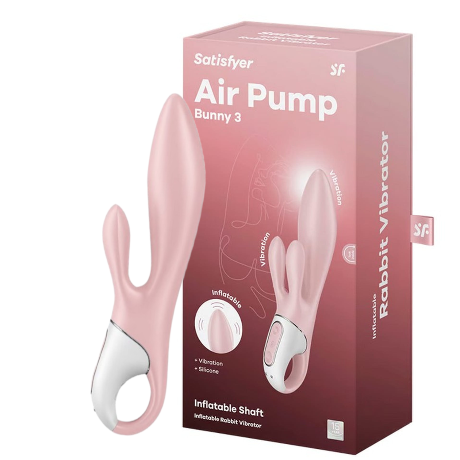 Satisfyer Air Pump Bunny 3 – Wibrator Rabbit z funkcją pompowania i wibracjami, silikonowy, USB